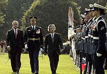 State and official visits receive significant press coverage and political attention and are, therefore, a powerful diplomatic symbol that signals either the friendly nature of the relationship between the United States and the visiting state, or the importance of the foreign state to the U.S. government by the willingness of the sitting president to expend domestic political capital in hosting it.[8] A discussed 1995 state visit by China, for example, never materialized after the administration of Bill Clinton decided it was unwilling to face congressional criticism that was expected should such an invitation be offered. Instead, a working visit was held.[9] At the same time, declining or cancelling an invitation to a state or official visit can be interpreted as a rebuke of the United States on the international stage. In 1986, for instance, Hassan II of Morocco canceled a visit to Washington. Though the Moroccan government cited the king's personal fatigue as the reason, the cancellation was widely perceived as an expression of irritation with the U.S.' criticism over Moroccan relations with Libya.[10]