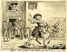 One of the legends of the town is that of Cheshire farmer, Jonathan Thatcher, who, in a 1784 demonstration against taxation, avoided Pitt the Younger's saddle tax on horses by riding to market at Stockport on an ox.[24] The incident is also celebrated in 'The Glass Umbrella' in St Petersgate Gardens, one of the works on Stockport's Arts Trail.[25]