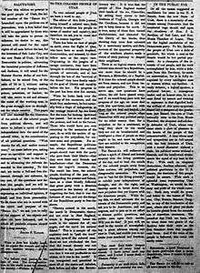 The Broad Ax (1895-1931) was a weekly newspaper that began publication on Aug. 31, 1895, originally in Salt Lake City, Utah, by Julius F. Taylor. After a series of conflicts with the Latter Day Saints, Taylor relocated the newspaper to Chicago, Illinois in 1899.[1][2] The Broad Ax has been described as "the most controversial black newspaper in Chicago in the late nineteenth century," in some ways due to its criticism of Booker T. Washington.[3]