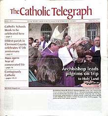 The Catholic Telegraph is a monthly newspaper published by the Roman Catholic Archdiocese of Cincinnati primarily for its 500,000 congregants. The archdiocese covers 19 counties in Ohio, including the Cincinnati and Dayton metropolitan areas. The Telegraph has published continuously since 1831, except for a brief period in 1832,[2] making it the first diocesan newspaper and second oldest Catholic newspaper in the United States.[3] It published weekly until September 2011, when it became a monthly publication.[2]