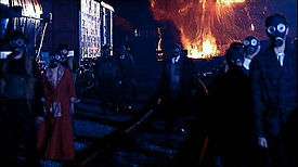Continuing the "Bad Wolf" references, the German bomb that Jack sits on has the words "Schlechter Wolf" stencilled on its shell which, literally translated from German, means "Bad Wolf".[9] Mickey's website, "Who is Doctor Who?" and the UNIT website both carry reports about unexploded "Schlechter Wolf" bombs in the present day, implying they may be something more sinister than just a German terror weapon.[10][11]