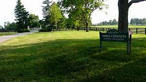 Three Chimneys Farm is an American Thoroughbred race horse breeding farm in Midway, Kentucky established in 1972 by Mr. & Mrs. Robert N. Clay. Widely known as one of the world's preeminent horse farms, Three Chimneys has been home to a number of famous horses including U.S. Triple Crown champion Seattle Slew, U.S. Filly Triple Crown champion Chris Evert, as well as Silver Charm, Chief's Crown, Genuine Risk, Point Given, Slew o' Gold, Capote, Smarty Jones, and Big Brown.