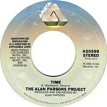 "Time" is a song released in 1981 as a single by the Alan Parsons Project. It was from their 1980 album The Turn of a Friendly Card. In the U.S., the song peaked at #15 on the Billboard[1] and spent two weeks at #14 on Cash Box, making it the group's second most successful single.[2] Cash Box ranked it as the 94th biggest hit of 1981.[3] In Canada, the song peaked at #30.
