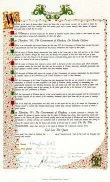 Now Therefore, We The Government of Rhodesia, in humble submission to Almighty God who controls the destinies of nations, conscious that the people of Rhodesia have always shown unswerving loyalty and devotion to Her Majesty the Queen and earnestly praying that we and the people of Rhodesia will not be hindered in our determination to continue exercising our undoubted right to demonstrate the same loyalty and devotion, and seeking to promote the common good so that the dignity and freedom of all men may be assured, Do, By This Proclamation, adopt, enact and give to the people of Rhodesia the Constitution annexed hereto;