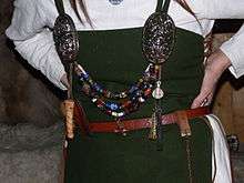 Women had a relatively free status in the Nordic countries of Sweden, Denmark and Norway, illustrated in the Icelandic Grágás and the Norwegian Frostating laws and Gulating laws.[105] The paternal aunt, paternal niece and paternal granddaughter, referred to as odalkvinna, all had the right to inherit property from a deceased man.[105] In the absence of male relatives, an unmarried woman with no son could inherit not only property but also the position as head of the family from a deceased father or brother. Such a woman was referred to as Baugrygr, and she exercised all the rights afforded to the head of a family clan, such as the right to demand and receive fines for the slaughter of a family member, until she married, by which her rights were transferred to her husband.[105] After the age of 20, an unmarried woman, referred to as maer and mey, reached legal majority and had the right to decide of her place of residence and was regarded as her own person before the law.[105] An exception to her independence was the right to choose a marriage partner, as marriages were normally arranged by the clan.[106] Widows enjoyed the same independent status as unmarried women. A married woman could divorce her husband and remarry.[107] It was also socially acceptable for a free woman to cohabit with a man and have children with him without marrying him, even if that man was married; a woman in such a position was called frilla.[107] There was no distinction made between children born inside or outside of marriage: both had the right to inherit property after their parents, and there was no "legitimate" or "illegitimate" children.[107] Women had religious authority and were active as priestesses (gydja) and oracles (sejdkvinna).[108] They were active within art as poets (skalder)[108] and rune masters, and as merchants and medicine women.[108] These liberties gradually disappeared after the introduction of Christianity, and from the late 13th-century, they are no longer mentioned.[105]