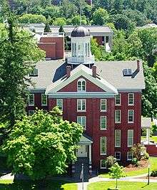 Total costs for the building were $40,000 at occupation with a need for approximately an additional $17,000 to finish and furnish the building.[3] The building was first used for classrooms, a library, parlors, recitation rooms, and some physical education in the attic.[7] Also in the early years the structure housed the chapel services of the school,[8] and some temporary accommodations for students.[9]