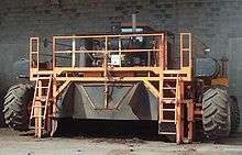 Compost windrow turners were developed to produce compost on a large scale by Fletcher Sims Jr. of Canyon, Texas . They are traditionally a large machine that straddles a windrow of 4 feet (1.25 meters) or more high, by as much as 12 feet (3.5 meters) across. Although smaller machines exist for small windrows, most operations use large machines for volume production. Turners drive through the windrow at a slow rate of forward movement. They have a steel drum with paddles that are rapidly turning. As the turner moves through the windrow, fresh air (oxygen) is injected into the compost by the drum/paddle assembly, and waste gases produced by bacterial decomposition are vented. The oxygen feeds the aerobic bacteria and thus speeds the composting process.