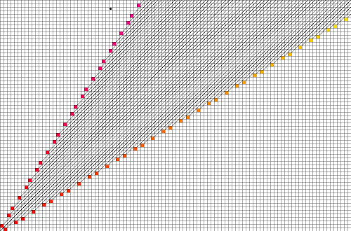 For instance, all positions of the form (0, m) and (m, m) with m > 0 are hot, by rule 2. However, the position (1,2) is cold, because the only positions that can be reached from it, (0,1), (0,2), and (1,1), are all hot. The cold positions (n, m) with the smallest values of n and m are (0, 0), (1, 2), (3, 5), (4, 7),(6,10) and (8, 13).