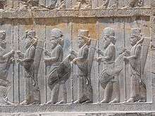 Other archaeological evidence supporting Xenophon’s picture of a confederation of Medes and Persians, rather than a subjugation of the Medes by the Persians, comes from the bas-reliefs in the stairway at Persepolis. These show no distinction in official rank or status between the Persian and Median nobility. Although Olmstead followed the consensus view that Cyrus subjugated the Medes, he nevertheless wrote, "Medes were honored equally with Persians; they were employed in high office and were chosen to lead Persian armies."[12] A more extensive list of considerations related to the credibility of the Cyropaedia’s picture of the relationship between the Medes and Persians is found on the Cyropaedia page.