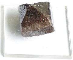 Zircon is ubiquitous in the crust of Earth. It occurs as a common accessory mineral in igneous rocks (as primary crystallization products), in metamorphic rocks and as detrital grains in sedimentary rocks.[1] Large zircon crystals are rare. Their average size in granite rocks is about 0.1–0.3 mm, but they can also grow to sizes of several centimeters, especially in mafic pegmatites and carbonatites.[1] Zircon is also very resistant to heat and corrosion.