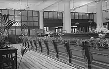 The site at the corner of St Georges Terrace and William Street known as "Carr's Corner"[3] was purchased by AMP in 1910,[1] and in 1915 the AMP Chambers designed by Oldham and Cox were built on the corner.[5] This six-storey building was clad with sandstone, and the interior was decorated with jarrah.[6]