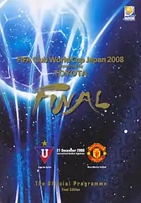 The 2008 FIFA Club World Cup Final was the final match of the 2008 FIFA Club World Cup, an association football tournament for the champion clubs from each of FIFA's six continental confederations. The match took place at the International Stadium Yokohama, Japan, on 21 December 2008, and pitted LDU Quito of Ecuador, the CONMEBOL club champions, and Manchester United of England, the UEFA club champions. Despite going down to ten men early in the second half, Manchester United won the match 1–0 thanks to a 73rd-minute goal from Wayne Rooney.[3]