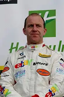 Drama started almost immediately, when Gordon Shedden's Civic caught fire[19] in the first free practice, causing the Scotsman to set no competitive time in qualifying, which belonged to Frank Wrathall, setting his maiden pole position and a new course record.[20] Race one though saw Jason Plato win after starting second on the grid and taking the lead into the first turn. Wrathall managed to bring his Dynojet Toyota home second. Third place went to Andrew Jordan who narrowly beat Dave Newsham to the line after the two drivers came together several times during the final lap. However, Newsham would later be disqualified after being found underweight.[21] This promoted Matt Neal to fourth, whilst his teammate Shedden removed from last on the grid to seventh. Debutant Holland failed to finish the race after crashing at turn one with Adam Morgan. Race two saw old rivals Plato and Neal once again come together amid frantic action for the win. Plato had led from the start; however Neal took the lead after sending the MG into a large slide coming through the penultimate corner. At the next turn, Plato returned the favour sending both Neal and himself off the track. This promoted Pirtek's Andrew Jordan to his first win of the season and Gordon Shedden up to second with Plato and Neal finishing third and fourth respectively. The reverse grid race three saw the ex-888 Vectras of Lea Wood and Dave Newsham lead the early laps in first and second respectively, until lap four, where Newsham took the lead where he stayed till the end, taking his first BTCC win. A career first podium wasn't on the cards though for Wood, after a gearbox failure with only three laps to go. This left Tom Onslow-Cole with second place and Shedden crossing the line in third place ahead of Jason Plato. However, post-race scrutineering found that Shedden's Honda had been over-boosting, thus disqualifying him from the results.[22] This promoted Plato to third, whilst Neal recovered from and early spin, which sent him to the back of the field, to finish eighth.[23]