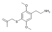 | 2C-T-3[6] | H | SCH2C(=CH2)CH3 | ![]() |