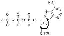 An ATP-binding motif is a 250-residue sequence within an ATP-binding protein’s primary structure. The binding motif is associated with a protein’s structure and/or function.[1] ATP is a molecule of energy, and can be a coenzyme, involved in a number of biological reactions. ATP is proficient at interacting with other molecules through a binding site. The ATP binding site is the environment in which ATP catalytically actives the enzyme and, as a result, is hydrolyzed to ADP.[2] The binding of ATP causes a conformational change to the enzyme it is interacting with.[3]