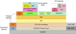 ATSC-M/H protocol stack is mainly an umbrella protocol that uses OMA ESG, OMA DRM, MPEG-4 in addition to many IETF RFCs.