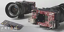 AXIOM Alpha was a digital cinema camera proof of concept prototype.[27] Only two units were built in 2013 and the second revision model was presented at the Metalab (a Vienna-based Hackerspace) in spring 2014.[28] The main components included a Zedboard using a Xilinx Zynq-7020[29] System on a chip (SoC) and a 4K Super35mm image sensor designed by the Belgian company CMOSIS (later renamed to ams Sensors Belgium after being acquired by ams [30]).[31]