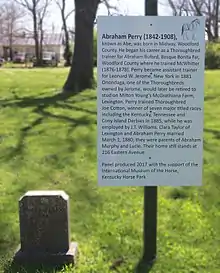 Abraham "Abe" Perry (1842-1908) was an American thoroughbred horse trainer born in Midway, Kentucky best remembered as the winner of the 1885 Kentucky Derby with Joe Cotton.[1] He was the first African-American trainer of a classic race winner to be mentioned in post-race reports.[2]