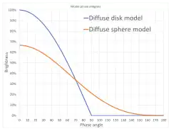 Planetary bodies can be approximated reasonably well as ideal diffuse reflecting spheres. Let be the phase angle in degrees, then[13]