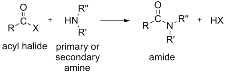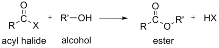 In the above reactions, HX (hydrogen halide or hydrohalic acid) is also formed. For example, if the acyl halide is an acyl chloride, HCl (hydrogen chloride or hydrochloric acid) is also formed.