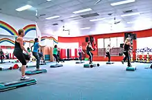 Step aerobics is a form of aerobic exercise that uses a low elevated platform, the step, of height tailored to individual needs by inserting risers. Step aerobics classes are offered at many gyms.
