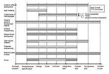 Most agile development methods break product development work into small increments that minimize the amount of up-front planning and design. Iterations, or sprints, are short time frames (timeboxes) that typically last from one to four weeks. Each iteration involves a cross-functional team working in all functions: planning, analysis, design, coding, unit testing, and acceptance testing. At the end of the iteration a working product is demonstrated to stakeholders. This minimizes overall risk and allows the product to adapt to changes quickly.[24] An iteration might not add enough functionality to warrant a market release, but the goal is to have an available release (with minimal bugs) at the end of each iteration.[25] Through incremental development products have room to "fail often and early" throughout each iterative phase instead of drastically on a final release date.[26] Multiple iterations might be required to release a product or new features. Working software is the primary measure of progress.[23]