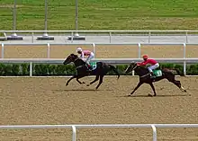 Turkmenistan has a separate agency, Turkmen Atlary, responsible for the breeding, training and maintenance of Akhal-Teke horses.[31] However, the agency's work has been the focus of criticism from the President of the country, who holds the agency responsible for decreasing numbers of horses and inadequate facilities for their breeding, training and management.[32] At present Akhal-Teke horses in Turkmenistan are not registered with any other studbook. The main reason for this are allegations of a heavy infusion of Thoroughbred blood into the breed to create faster horses for racing in Turkmenistan.[33] There are estimates that as many as 30% of the horses in the Ashgabat hippodrome were not purebred.[34]