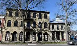 The Albertus Building, also known as the Gutenberg Haus, is a historic building located in Guttenberg, Iowa, United States. The two-and three-story structure of locally quarried limestone was completed around 1855 by C. Albertus. A unique feature of the building are the pointed arch doorways and windows, which have not been found on similar commercial buildings in Iowa.[2] The building was initially used for a combination of commercial and residential use. Clothing and grocery stores were located on the first floor of the southern three-story block. By 1886 the northern two-story block was all residential, and by 1894 the whole building had gone residential.
