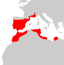 The Algerian mouse inhabits south-western Europe and the western Mediterranean coast of Africa. It is found throughout mainland Portugal, and in all but the most northerly parts of Spain. Its range extends east of the Pyrenees into southern France, where it is found in south-eastern regions around Toulouse and up the Rhone valley to Valence. It is also found throughout the Balearic Islands. In Africa, it is found in the Maghreb regions of Morocco, Algeria, Tunisia, and western Libya, north of the Sahara desert. Also, a small population occurs on the coast of eastern Libya.[1]