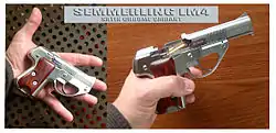 American Derringer also makes a small semi-automatic pistol called the LM5, chambered for .25ACP and .32 Auto. The Semmerling LM4 is a five-shot, .45 ACP manual repeating double-action pistol designed as a backup gun.