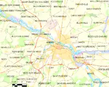 The bus network is today managed by the Ametis mixed economy company, whose network covers Amiens Métropole, the agglomeration of Amiens. The establishment of dedicated bus lanes began in 2006. Former Mayor Gilles de Robien had envisioned the creation of a tram, but the choice of dedicated bus lanes had been preferred for reasons of cost and patronage. His successor, Mayor Gilles Demailly, had been considering the development of a TSCP in the metropolitan area. As a result of numerous studies and conferences, elected representatives voted for the creation of a tram at the municipal Council of 15 November 2012. The project had been endorsed by the Communauté d'agglomération Amiens Métropole on 18 December 2012 and the commissioning of a first north-south tram route was scheduled for 2018/2019.[11] Following the elections of 2014, which were a defeat for most municipal and community carriers of the project, the new mayor of Amiens Brigitte Fouré, and by extension the new president of Amiens Métropole Alain Gest, decided to suspend the project at least during the time of their respective mandates, thus applying a campaign promise (the tram was at the heart of debate)[12] and despite a project announcement of trams on tyres (of TVR type).[13][14] Improvement of public transit would then be only by that of the bus network. Indeed, in December of the same year, the Community Council approved funding for a study (the sixth in 20 years)[15] relating to the establishment of a rapid transit bus network (BHNS), which should enter into service in March 2019, and whose vehicles could be electric.[16]