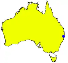 Sandstone rough-barked apple has a limited distribution near the coast of northern New South Wales along a sandstone belt running from near Glenreagh, north-west of Coffs Harbour to Coaldale north-west of Grafton. It grows in woodland on shallow sandstone soils.[2][4]