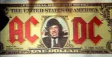 Angus Bucks, Angus Bills or AC/DC Dollars are fake, United States one-dollar bills featuring Angus Young, the lead guitarist from the Australian rock 'n' roll band AC/DC. Thousands were dropped on the audience as a theatrical gimmick at the end of the song "Moneytalks" during the band's tour to promote their 1990 album The Razors Edge.