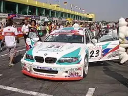 Ao Chi Hong on the grid in his BMW at Zhuhai International Circuit in 2005.