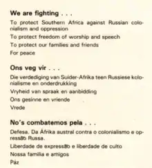 - Roherty, James Michael (1992). State security in South Africa: civil-military relations under P.W. Botha. M.E. Sharpe. p. 23. ISBN 978-0-87332-877-7.