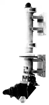 The LM instead had an alignment optical telescope (AOT), essentially a periscope. The outer element of the AOT was a sun-shielded prism that could be rotated to one of six fixed positions relative to the LM, in order to cover a large portion of the lunar sky. Each position had a 60º field of view. When rotated, the AOT's position was readable by the AGC; by pointing the reticule at two different stars, the computer could determine the craft's orientation.[3]