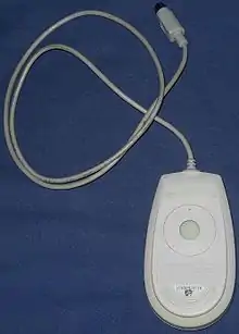 The mouse created for the Apple Lisa was among the first commercial mice sold. Included with the Lisa system in 1983, it was based on the mouse used in the 1970s on the Alto computer at Xerox PARC. Unique to this mouse was the use of a steel ball, instead of the usual rubber found in subsequent and modern mice. It connected to the computer by means of a standard DE-9 and unique squeeze-release connector. Though developed by Apple, it was actually designed by an outside firm, Hovey-Kelley (renamed IDEO in 1991[7]), who built hundreds of prototypes and conducted exhaustive testing with focus groups in order to create the perfect device.[8] Their perseverance paid off as not only did they bring the design in on time and on budget, but the resulting device remained virtually unchanged for almost 20 years.[9] It was this mouse that established Apple's mouse as a one-button device for over 20 years. Every single aspect of the mouse was researched and developed, from how many buttons to include, to how loud the click should be. The original case design was Bill Dresselhaus's and took on an almost Art Deco flavor with its formal curving lines to coordinate with the Lisa.[10]