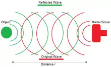array processing concept was closely linked to radar and sonar systems which represent the classical applications of array processing. The antenna array is used in these systems to determine location(s) of source(s), cancel interference, suppress ground clutter. Radar systems used basically to detect objects by using radio waves. The range, altitude, speed and direction of objects can be specified. Radar systems started as military equipments then entered the civilian world. In radar applications, different modes can be used, one of these modes is the active mode. In this mode the antenna array based system radiates pulses and listens for the returns. By using the returns, the estimation of parameters such as velocity, range and DOAs (direction of arrival) of target of interest become possible. Using the passive far-field listening arrays, only the DOAs can be estimated. Sonar systems (Sound Navigation and Ranging) use the sound waves that propagate under the water to detect objects on or under the water surface. Two types of sonar systems can be defined the active one and the passive one. In active sonar, the system emits pulses of sound and listens to the returns that will be used to estimate parameters. In the passive sonar, the system is essentially listening for the sounds made by the target objects. It is very important to note the difference between the radar system that uses radio waves and the sonar system that uses sound waves, the reason why the sonar uses the sound wave is because sound waves travel farther in the water than do radar and light waves. In passive sonar, the receiving array has the capability of detecting distant objects and their locations. Deformable array are usually used in sonar systems where the antenna is typically drawn under the water. In active sonar, the sonar system emits sound waves (acoustic energy) then listening and monitoring any existing echo (the reflected waves). The reflected sound waves can be used to estimate parameters, such as velocity, position and direction etc. Difficulties and limitations in sonar systems comparing to radar systems emerged from the fact that the propagation speed of sound waves under the water is slower than the radio waves. Another source of limitation is the high propagation losses and scattering. Despite all these limitations and difficulties, sonar system remains a reliable technique for range, distance, position and other parameters estimation for underwater applications.[3][5]
