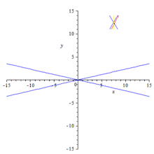 An asymptote can be either vertical or non-vertical (oblique or horizontal). In the first case its equation is x = c, for some real number c. The non-vertical case has equation y = mx + n, where m and are real numbers. All three types of asymptotes can be present at the same time in specific examples. Unlike asymptotes for curves that are graphs of functions, a general curve may have more than two non-vertical asymptotes, and may cross its vertical asymptotes more than once.