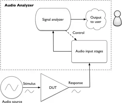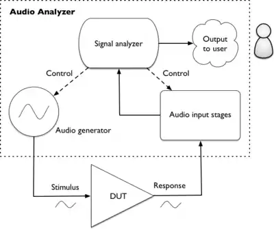 Audio analysis requires that the device under test receive a stimulus signal of known characteristics, with which the output signal (response) may be compared by the analyzer in order to determine differences expressed in the specific measurements. This signal may be generated or controlled by the analyzer itself or may come from another source (e.g., a recording) as long as characteristics relative to the desired measurement are defined.