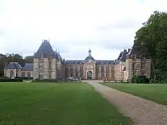 In November 1874 Dreyfus bought an imposing neo-classical hotel at 3 Rue Ruysdael. There he accumulated an extraordinary art collection, which he inventoried in detail in 1887.[45] Dreyfus showed objects in the Peru pavilion at the Exposition Universelle (1878) in Paris, including furniture encrusted with pearls and objects of art. He also sent three mummies from Peru to the Paris Anthropological society in 1878.[2] In June 1888 Dreyfus bought the domain of the Château de Pontchartrain from Count Guido Henckel von Donnersmarck.[46] In 1891 the architect Émile Boeswillwald was given the task of restoring the chateau.[47]