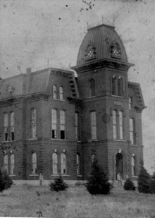 Austin College's founding president was Irish-born Presbyterian minister Samuel McKinney, who served as the school's president a second time from 1862 to 1871.[12] Under the tenure of the fourth president of Austin College, Reverend Samuel Magoffin Luckett,[13] Austin College suffered several yellow fever epidemics and complications related to the Civil War. Texas Synod of the Presbyterian Church decided the college would be relocated to Sherman in 1876. Construction of the new campus in north Texas came in the form of "Old Main," a two-story, red brick structure, which occurred between 1876 and 1878. Struggling with the Long Depression. Austin College saw little improvement to its building or grounds during the late 1870s; as such, Samuel Luckett resigned his position as president. From 1878 to 1885, the college continued to struggle from the aftershocks of economic depression; with an increasing debt and shrinking student body, the college turned to its 7th president, Reverend Donald MacGregor. A shrewd and well connected businessman, President MacGregor relieved a great deal of the college's debt and returned operations to normalcy. After MacGregor's death in 1887, the college welcomed President Luckett back to the campus. Throughout his second term as president, Samuel Luckett adopted a military program, grew the student body, introduced a YMCA chapter, established intercollegiate athletics and Greek fraternities, and added two wings to Old Main.