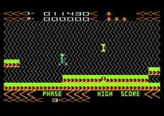 The original version of the game on the Atari 8-bit computers presented itself as a side-scroller, with the player's character running continuously from left to right as the background and path continuously scrolled. Control was limited to jumping at three different heights; holding the joystick down and pressing the button resulted in a low jump, holding the joystick up and pressing the button resulted in a high jump, and pressing the button by itself resulted in a medium jump. The running speed of the character was constant; only the height of the jumps differed, although speed of the character gradually increased of its own accord with each passing level. In two-player mode, each player controlled a different colored character with one character running in front of the other. The object of the game was to cover as much distance as possible without succumbing to the assorted perils of the path. Obstacles included platforms and ceilings of differing heights, pits, spikes, platform steps of staggered heights, and other assorted pitfalls. Contact with any part of the landscape other than the path would result in the loss of a player's life and would return the player to the last checkpoint.