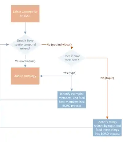 The process also works for types of things. Take “bridges” as a concept. It doesn’t have spatiotemporal extent, so we go to the next question “does it have members ?”. It does – the members are all the bridges in the world. We then identify some exemplar members – e.g. Waterloo Bridge. At this stage, it is advisable to identify exemplars that are “on the edge” of the set – e.g. things that may or may not be bridges – e.g. pontoons, bridging vehicles, etc. so as to accurately identify the extent of the type.