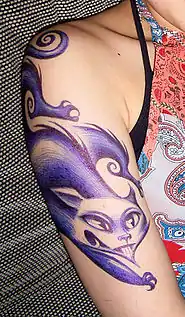 Ballpoint pens are among the various means of creating body art, as temporary tattoos for recreational, decorative and commercial purposes.[46] Ink is applied directly to skin in a manner similar to that of an actual tattoo gun, except that a ballpoint pen tattoo is temporary; it can be washed off at the wearer's discretion, or left to fade at its own natural rate (see gallery below). This can be an attraction for people who may not care for a permanent tattoo, but nonetheless enjoy the imagery.