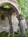 The complex consists of two churches, a vestibule, a chapel, the ancestral cemetery of Mamikonyan and remainders of khachkars.[3] The two churches and the vestibule that make the main group are placed near to each other in one line. The preserved oldest construction is the one-nave hall type church at the north of the complex, of which only a 3-4m high wall remains. The 13th century Saint Astvatsatsin is the main church, of which the entrance, parts of the southern and western walls, sections of flying arches, and pillars are still well preserved.[4]