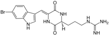 Barettin is the major compound in the deep-sea sponge Geodia barretti.[3] It was isolated for the first time in 1986 by Göran Lidgren, Lars Bohlin and Jan Bergman at Uppsala University, Sweden[1] but the correct chemical structure was determined later in 2002.[2] Barettin is written with one 'r' because the authors misspelled Geodia barretti with one 'r' in the original paper.[1]