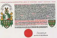 - Extract of Matriculation of the Arms of Barnaby Miln. Lyon Court, 1998