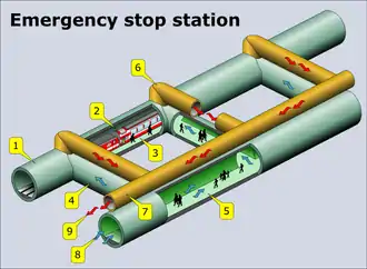 [image shows an evacuation station of the base tunnel Gotthard, the longest railway tunnel in the world – 57 km (35 mi)]