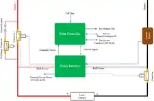The connection to loads is normally controlled through electromagnetic relays called contactors. The precharge circuit can be either power resistors connected in series with the loads until the capacitors are charged. Alternatively, a switched mode power supply connected in parallel to loads can be used to charge the voltage of the load circuit up to a level close enough to battery voltage in order to allow closing the contactors between battery and load circuit. A BMS may have a circuit that can check whether a relay is already closed before precharging (due to welding for example) to prevent inrush currents to occur.